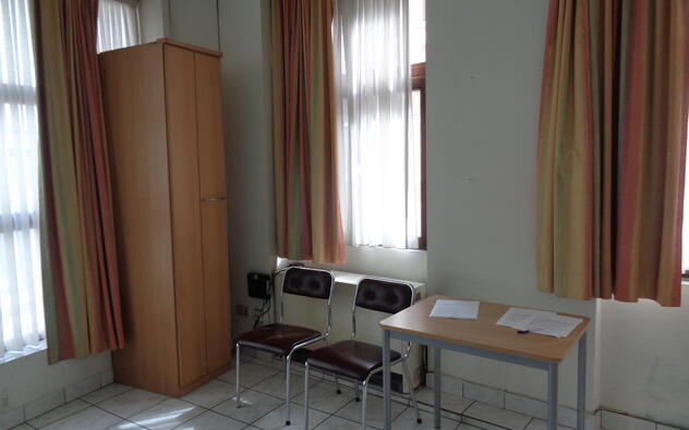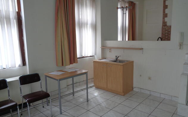 Nette studio in studentengebouw van 6 eenheden, centrum stad, brandcentrale, brandveilige deuren, brandhaspel, fietsenberging, conformiteitsattest, internet, dubbel glas, grote vensters met gordijnen, gedeeltelijk bemeubeld, alle comfort,...