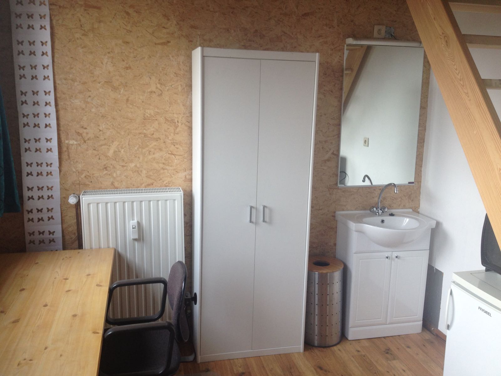 Elke kamer is gemeubeld (bed, kleerkast, boekenkast, bureau met bureaustoel, tafeltje met zetel) en beschikt over een wasbak met warm en koud water.